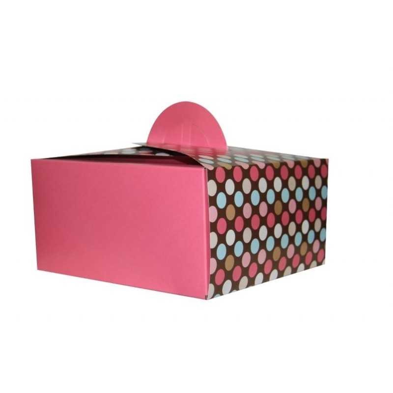 Elegantna kartonska kutija s ručkom — idealna za kolače, torte i slastice. Dimenzije: 28x28 cm.