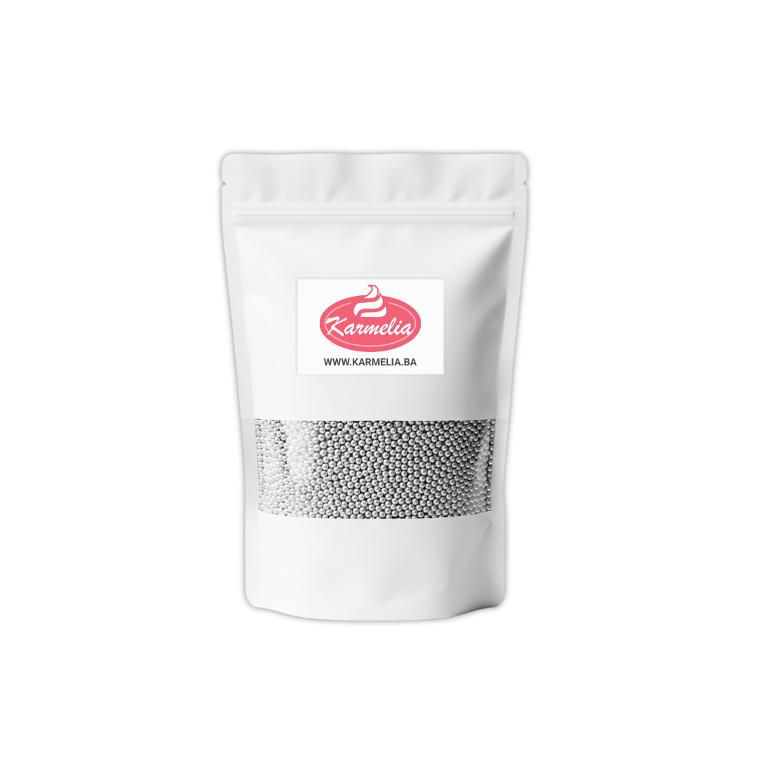 Jestive Perle Srebrene Sjajne No.0 50g - savršen dodir elegancije za vaše slastice! Ove prefinjene, male srebrne perle dodaju sjaj i sofisticiranost tortama, kolačima i desertima, pretvarajući ih u prava remek-djela.