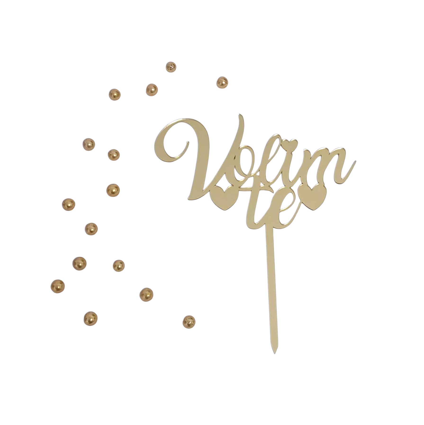 BH Topper Volim te - zlatni je savršen završni detalj za torte i kolače koji izražava ljubav i pažnju. Dodajte dozu glamura i topline svojim slasticama s ovim elegantnim zlatnim ukrasom.